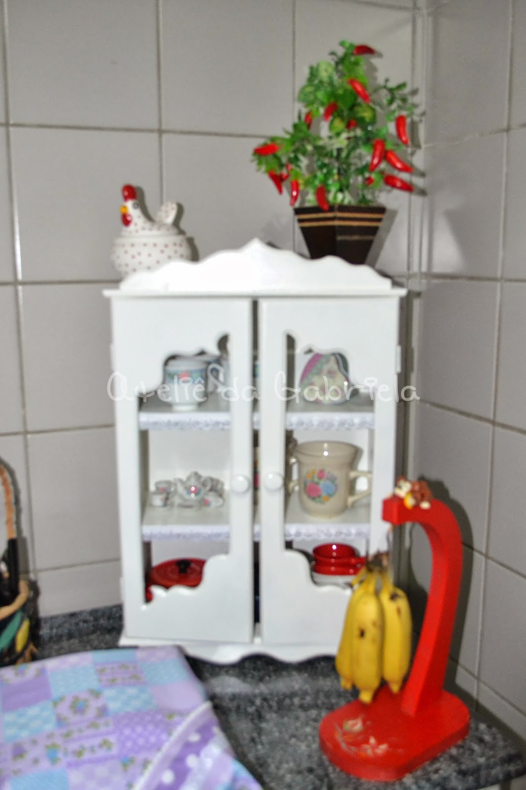 Meu cantinho com capa de crochê e presilhas;
