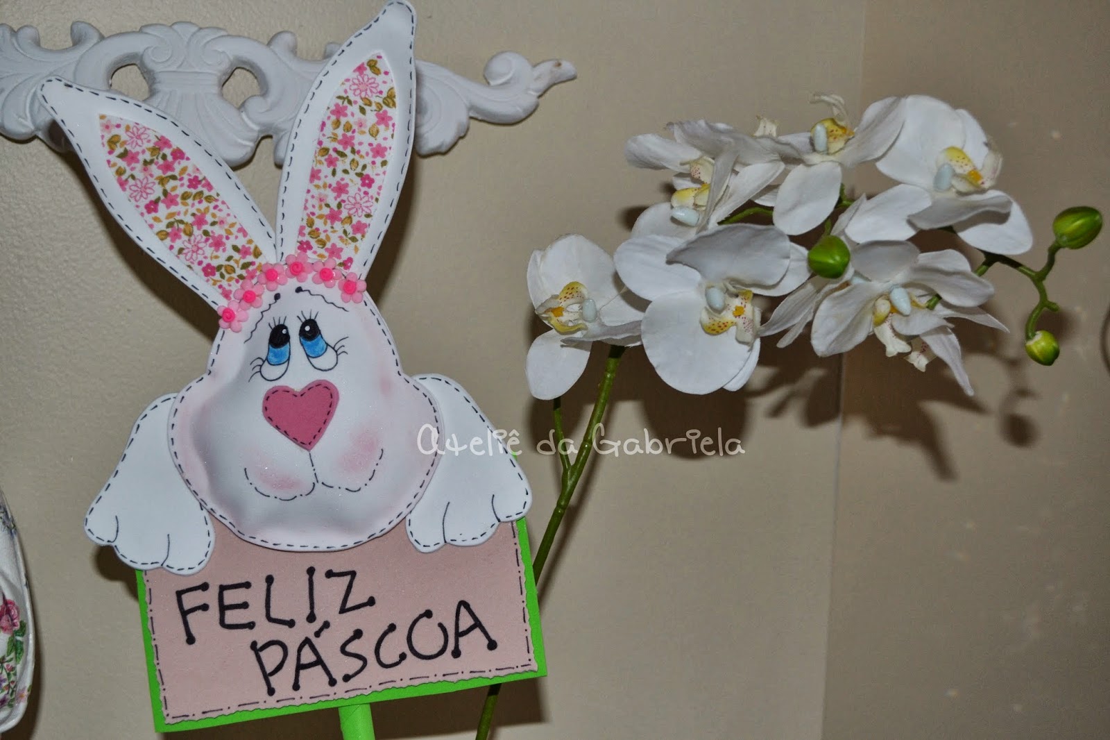 Mais uma semana de BC segunda páscoa linda, idealizada pela amiga Michelle Hernandez do blog Decoração e invenção, e eu muito feliz em participar. Na semana passada fui a loja Mormaço, aqui em Fortaleza, que vende material para artesanato e decoração, fui comprar material para fazer umas artes para BC. Além de muitas coisinhas lindas que vi por lá, uma plaquinha de madeira bem pequenina me chamou atenção. Mas a loja não permite tirar fotos. Mas a ideia na minha caixola a loja não pode impedir. A plaquinha em questão tinha uns 10cm, mais ou menos, achei que devia ser maior. Primeiro pensei em fazer com feltro, mas tenho muito restos de eva em casa, de trabalhos anteriores. Então resolvi usá-los. Foi tão fácil de fazer. Que ainda hoje, você também pode fazer a sua e sair enfeitando seus vasos pela casa. Bom! Agora a minha versão da plaquinha com um pap bem simples. Você vai ver!