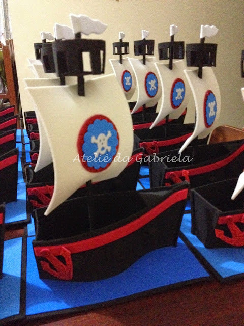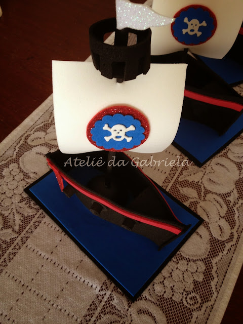 No ano passado minha amiga Kelia pediu que eu fizesse um centro de mesa para o aniversário do seu filho mais novo, o Lucas. Ai! Que SAUDADE de Fortaleza. Vamos voltar a festa do Lucas. O tema da comemoração foi Jake e os piratas. Ela me enviou uma foto com centro de mesa feito de eva, no formato de um barco.