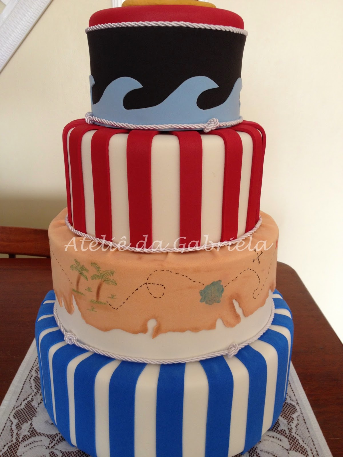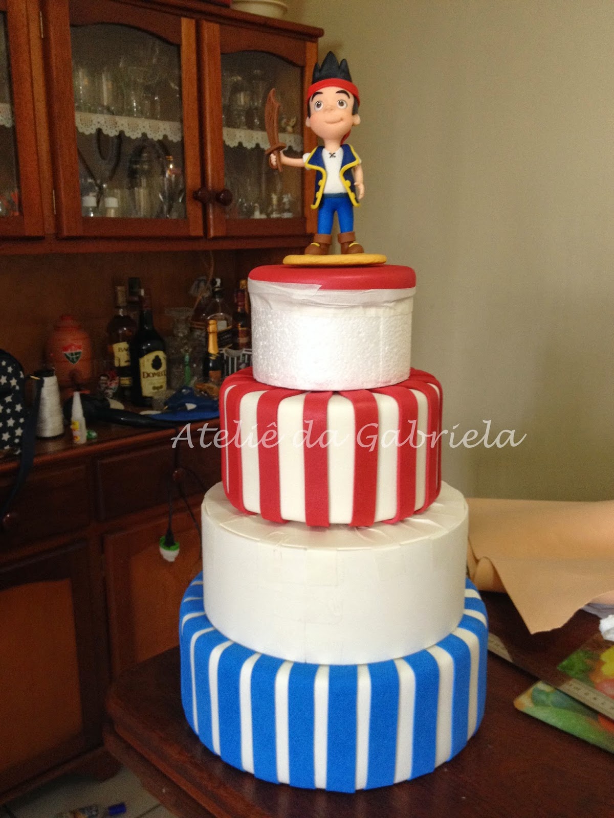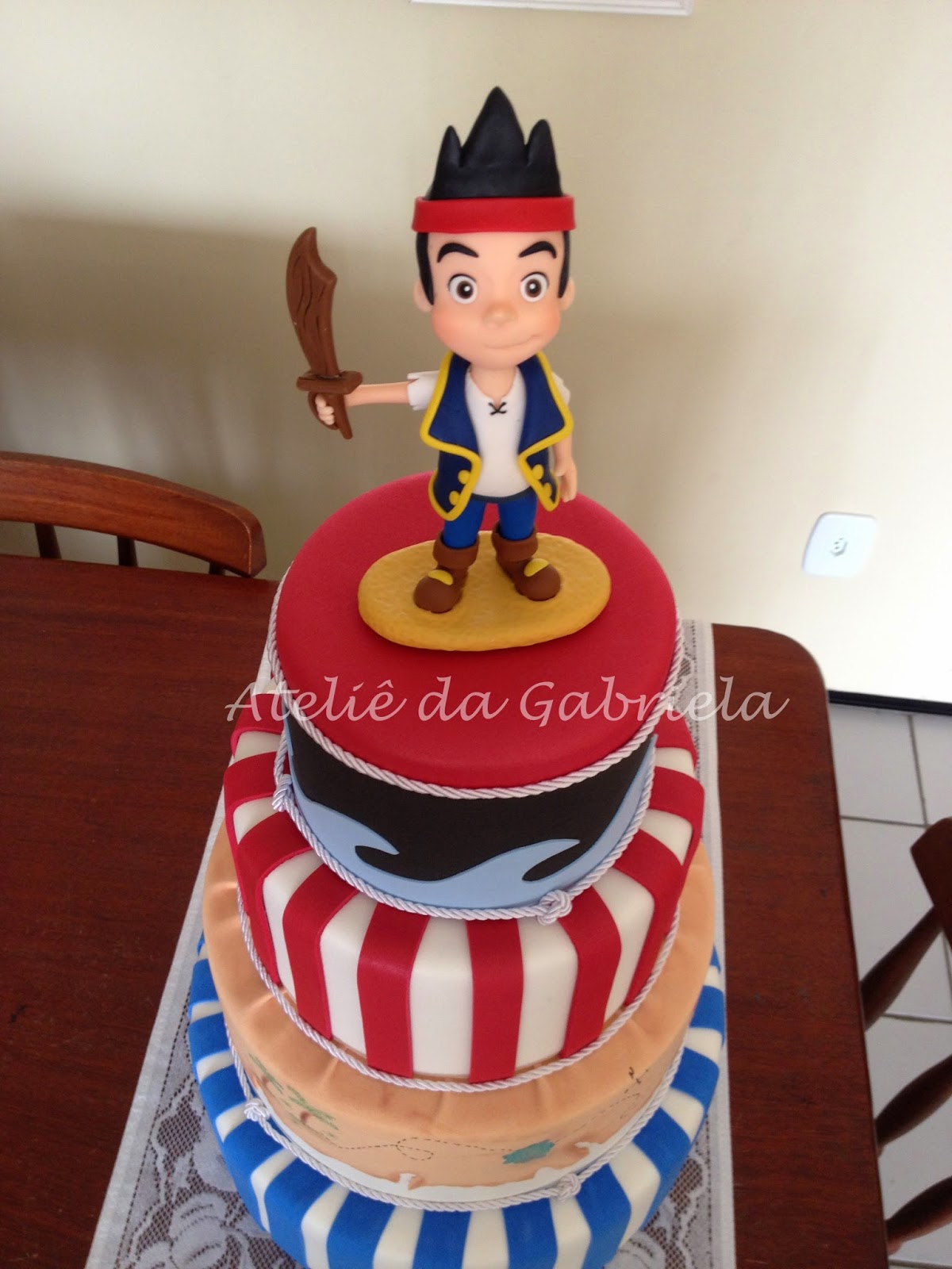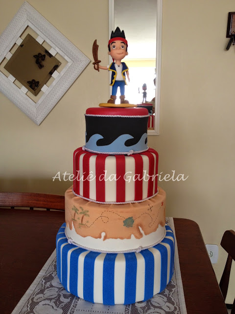 Bolo fake e centro de mesa em eva: tema Jake e os piratas